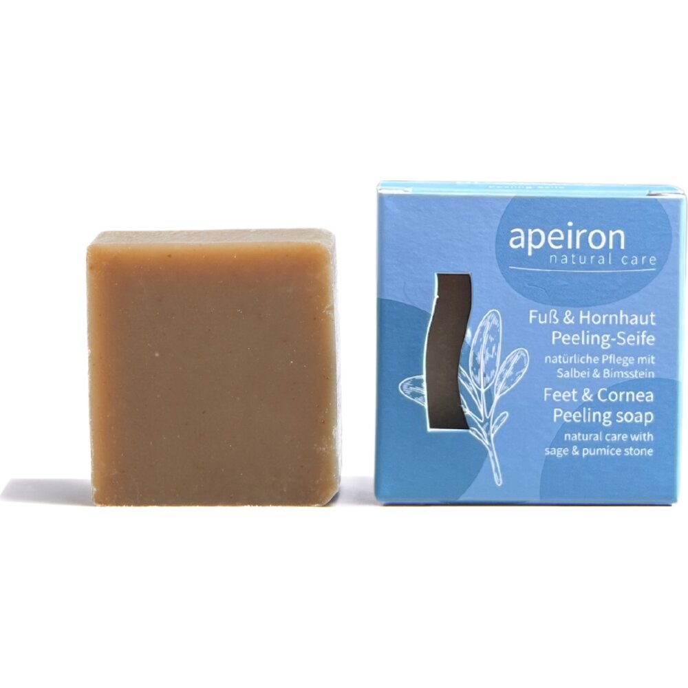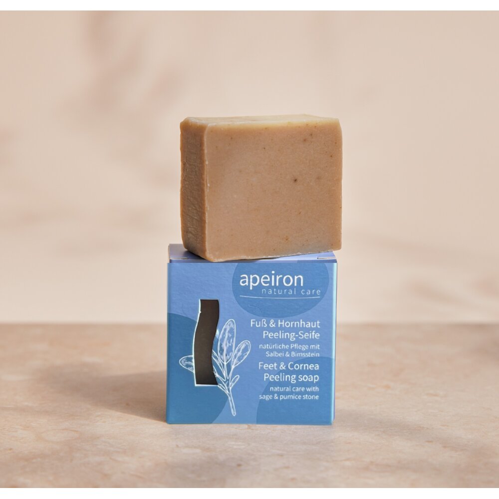 Die Füße spielen in unserem Leben eine „tragende“ Rolle und müssen einiges leisten, daher sollten sie auch in der Pflege mit Aufmerksamkeit bedacht werden. Gönnen Sie sich und Ihren gestressten Füßen eine kurze Auszeit und nehmen sich Zeit für ein kleines Fuß-Wasch-Ritual mit handgefertigter Seifen-Kunst. Jedes Stück Apeiron Naturseife ist ein Unikat und wird noch heute aufwendig und schonend in Handarbeit gefertigt. Fein vermahlenes, mineralisches Bimssteinpulver lässt zusammen mit hochwertigen Ölen aus Kokosnuss und Olive einen sanften, feincremigen Schaum entstehen, der trockene, schwielige oder verhornte Stellen wieder herrlich weich und geschmeidig pflegt. Salbei und Kamillenblüten kräftigen und beruhigen müde, strapazierte Füße, ätherische Öle aus Rosmarin und Orange wirken entspannend und erfrischend – für ein herrlich erholtes Fußgefühl und natürlich schöne Füße! Zertifizierte, erlesene Qualität aus Manufaktur-Herstellung Vegan, ohne Palmöl, synthetische Farb- u. Konservierungsstoffe, Paraffine, Emulgatoren, Alkohol u. EDTA, vollständig biologisch abbaubar.