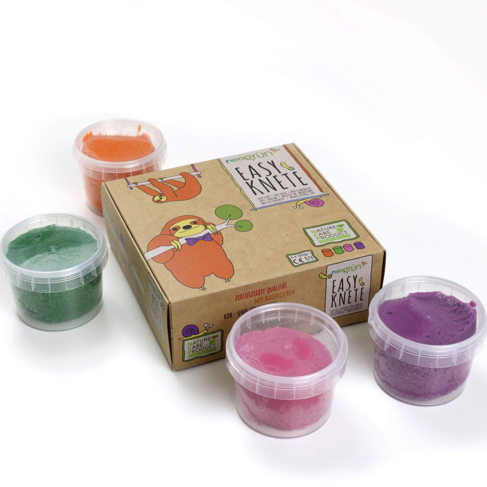 neogrün® Easy je obzvláště měkká a pružná modelovací hlína. Umožňuje nejen modelování, ale také lisování, ražení, otiskování a roztírání na papír a vytváření 3D obrázků.