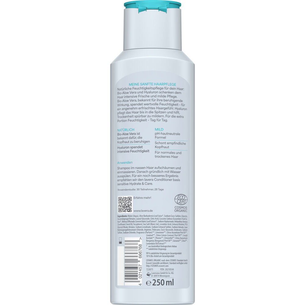 Erlebe mit dem Lavera BASIS SENSITIVE PFLEGESHAMPOO HYDRATE & CARE eine natürliche Feuchtigkeitspflege, die dein Haar sanft verwöhnt. Bio-Aloe Vera und Hyaluron sorgen für intensive Frische und schenken normales und trockenes Haar neue Geschmeidigkeit. Die pH-hautneutrale Formel schont empfindliche Kopfhaut und spendet spürbar Feuchtigkeit bis in die Spitzen. Für ein rundum gepflegtes Haargefühl - Tag für Tag.
