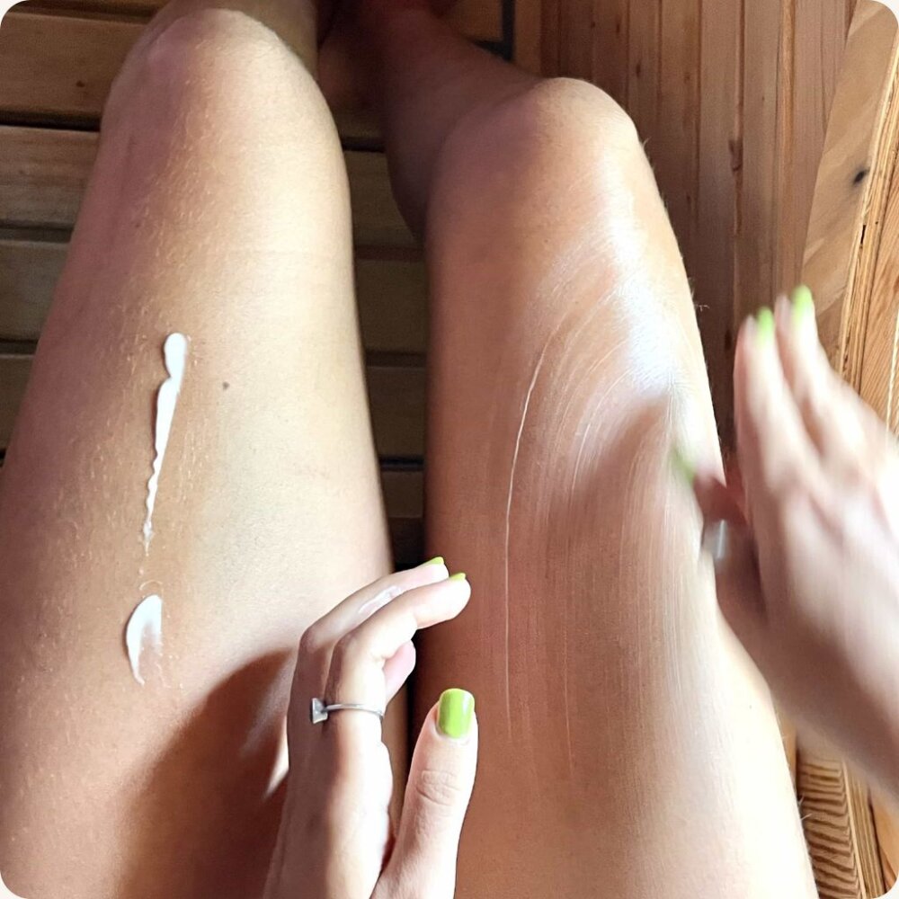 Applique une quantité généreuse de cette lotion corporelle naturelle sur ta peau après la douche ou chaque fois que ta peau a besoin d'un peu d'amour et d'hydratation.