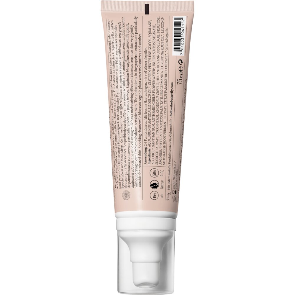 Un nettoyage délicat et un soin intensif se combinent dans le Cleansing Milk Cleansing Prebio de Farfalla Ultrasens. Le lait nettoyant relipidant élimine en douceur le maquillage et la saleté sans assécher la peau. Les agents prébiotiques favorisent un microbiome cutané sain, tandis que l'eau florale de camomille et l'extrait de pamplemousse apaisent et ont un effet antioxydant. Testé dermatologiquement et végétalien, ce lait est parfait pour les peaux sensibles et irritées. Pour un nettoyage en douceur, appliquer 2 à 3 pressions de pompe sur la peau humide et rincer à l'eau.