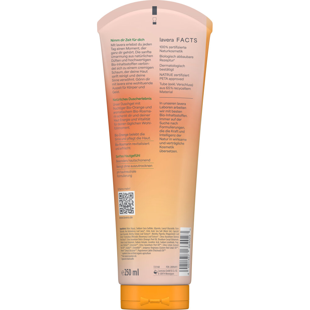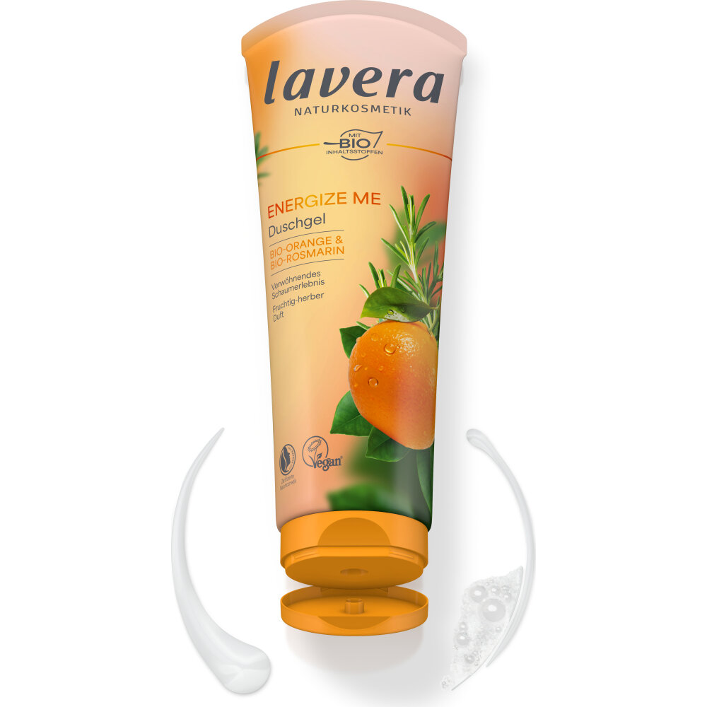 Starte energiegeladen in den Tag mit dem Lavera Duschgel Energize Me Bio-Orange & Bio-Rosmarin. Der fruchtig-herbe Duft aus ätherischen Bio-Ölen belebt die Sinne, während die milde Rezeptur deine Haut sanft reinigt und erfrischt. Bio-Orange spendet neue Vitalität, Bio-Rosmarin wirkt revitalisierend und sorgt für ein erfrischtes Hautgefühl. Der cremige Schaum reinigt ohne auszutrocknen und ist pH-hautneutral - ideal für die tägliche Pflege. Genieße ein belebendes Duscherlebnis, das Körper und Geist erfrischt und zugleich die natürliche Balance deiner Haut bewahrt.