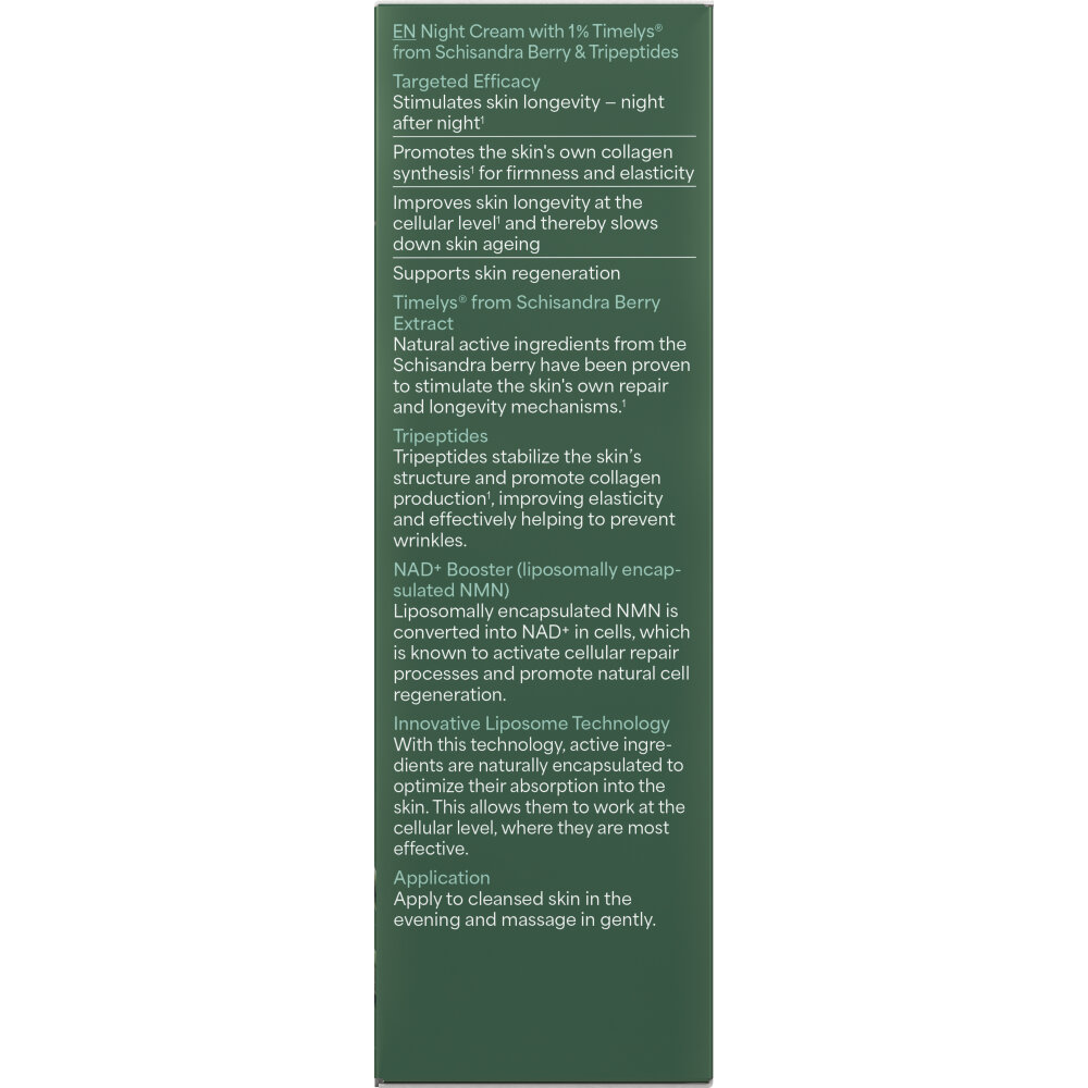 Erlebe Regeneration im Schlaf mit der Lavera SKIN LONGEVITY Nachtpflege TIMELYS® & Peptid-Komplex. Diese reichhaltige Nachtcreme kombiniert NAD+ Booster, 1 % TIMELYS® aus der Schisandra-Beere und Tripeptide, um die hauteigene Kollagensynthese zu fördern und die Langlebigkeit der Haut Nacht für Nacht zu stimulieren. Die Formel unterstützt die Zellregeneration und verbessert die Spannkraft, während sie Zeichen der Hautalterung gezielt mindert. Durch die innovative Liposomen-Technologie werden die Wirkstoffe besonders effektiv aufgenommen. Abends aufgetragen, sorgt sie für ein genährtes, geschmeidiges Hautgefühl und erweckt die Haut am Morgen sichtbar erholt und frisch.