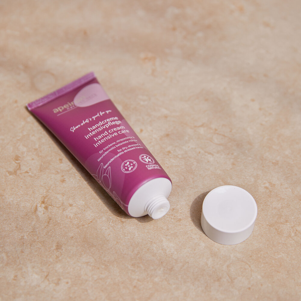 Apeiron Handcrème verzorgt en beschermt zelfs de meest gestreste handen. Bobobabolie, jojoba-olie, sheaboter, squalaan en papaja-extract ondersteunen de natuurlijke beschermingsfuncties van de huid en maken zelfs gebarsten en door de zon gestreste handen aangenaam soepel, terwijl sinaasappel- en lavendelolie zorgen voor een aangenaam subtiele, frisse geur. Door de snelle en volledige absorptie blijft er geen vervelend vettig laagje achter op de huid, zodat je je handen tussendoor snel kunt verwennen. Tip Bijzonder milde verzorging voor handen die last hebben van neurodermitis!