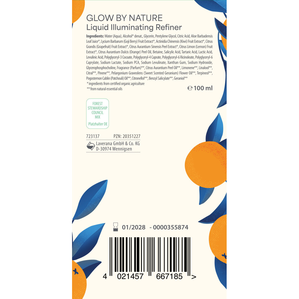 Glow by Nature Liquid Illuminating Refiner: Morgens oder abends mit einem Wattepad auf die gereinigte Haut auftragen Glow by Nature Vitamin C Boost-Serum: Morgens und abends vor der Pflege auf die gereinigte Haut auftragen und sanft einmassieren. Glow by Nature Vitamin C 3in1 Creme: Morgens und abends auf die gereinigte Haut auftragen und sanft einmassieren.